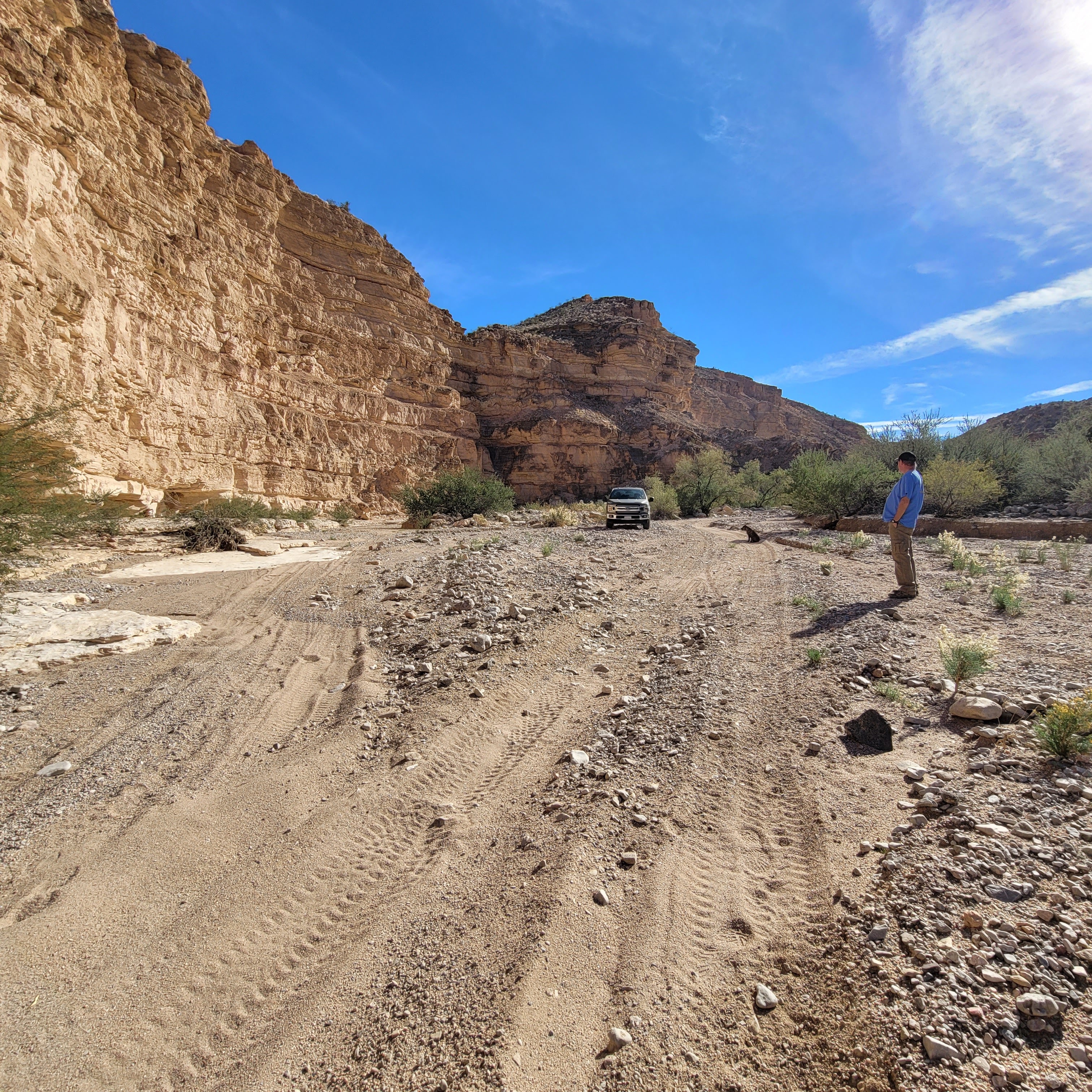 Mike and Astrid got here on Saturday. I must admit, it has been nice having the company. We went down to the Colorado River on Sunday. I had been warned about cattle on the roads since I got here on Tuesday but hadn’t seen one even off the highway. We finally saw some by the river.