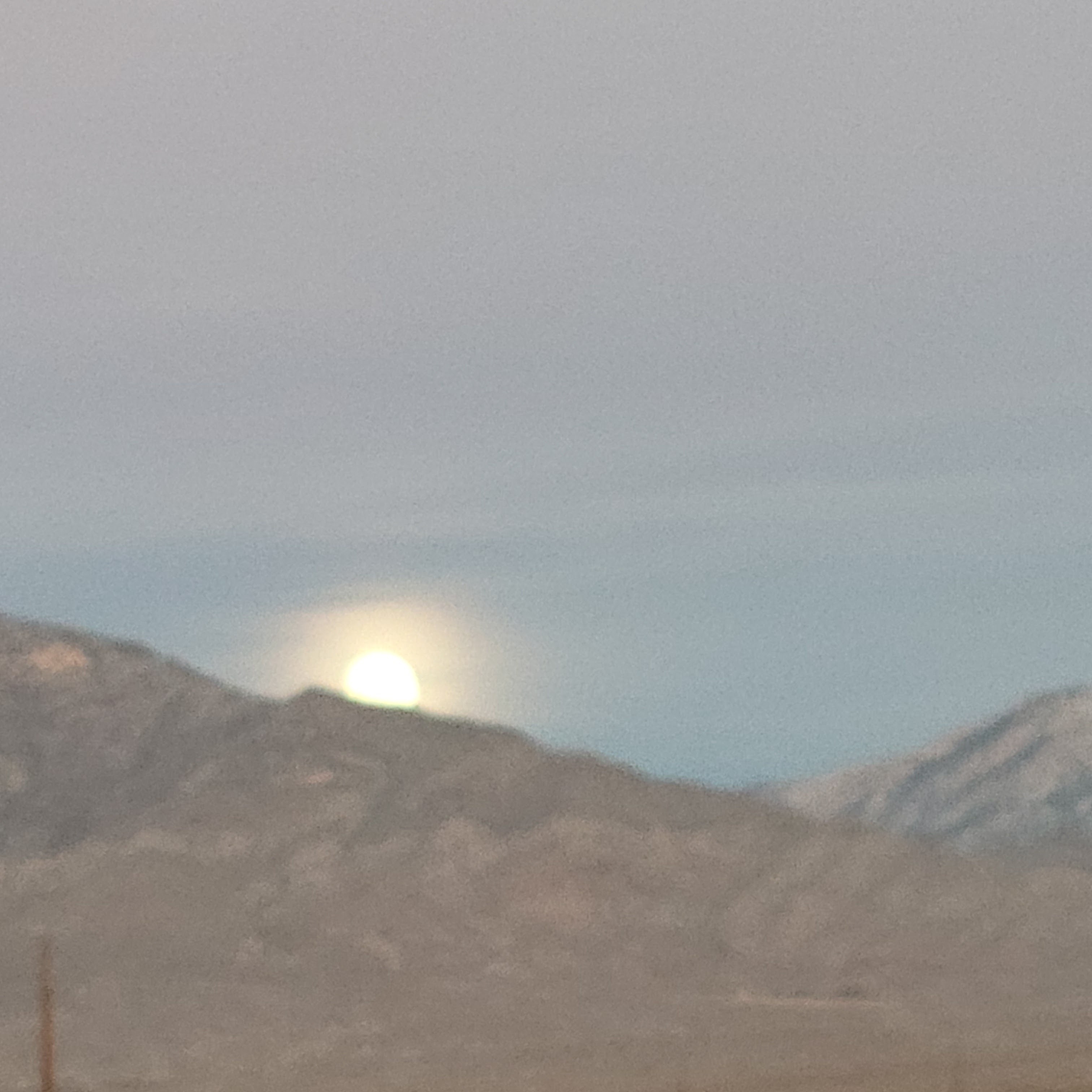 I was on my way back home yesterday and stopped at a little convenience store to get a soda. As I was leaving, I saw the moon just starting to come over the mountain. No one was behind me so I just sat at the stop sign and took some pictures.