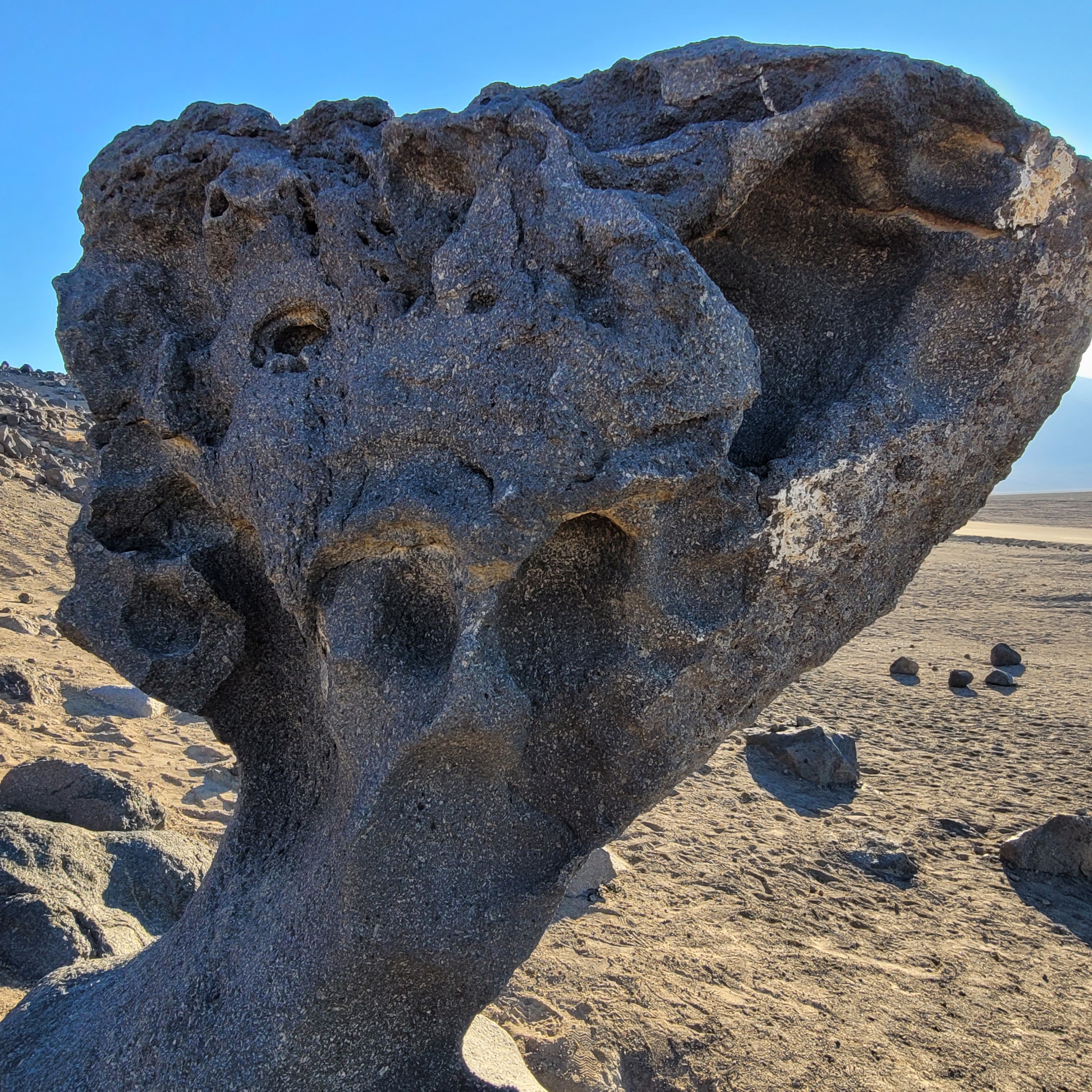 I saw this rock in November but didn’t get any pictures of it. My guess is that it was formed by the ice and volcanos too. Hard to tell from the pictures but it is as tall as I am. The face reminds me of a cross between the elephant man and ET.