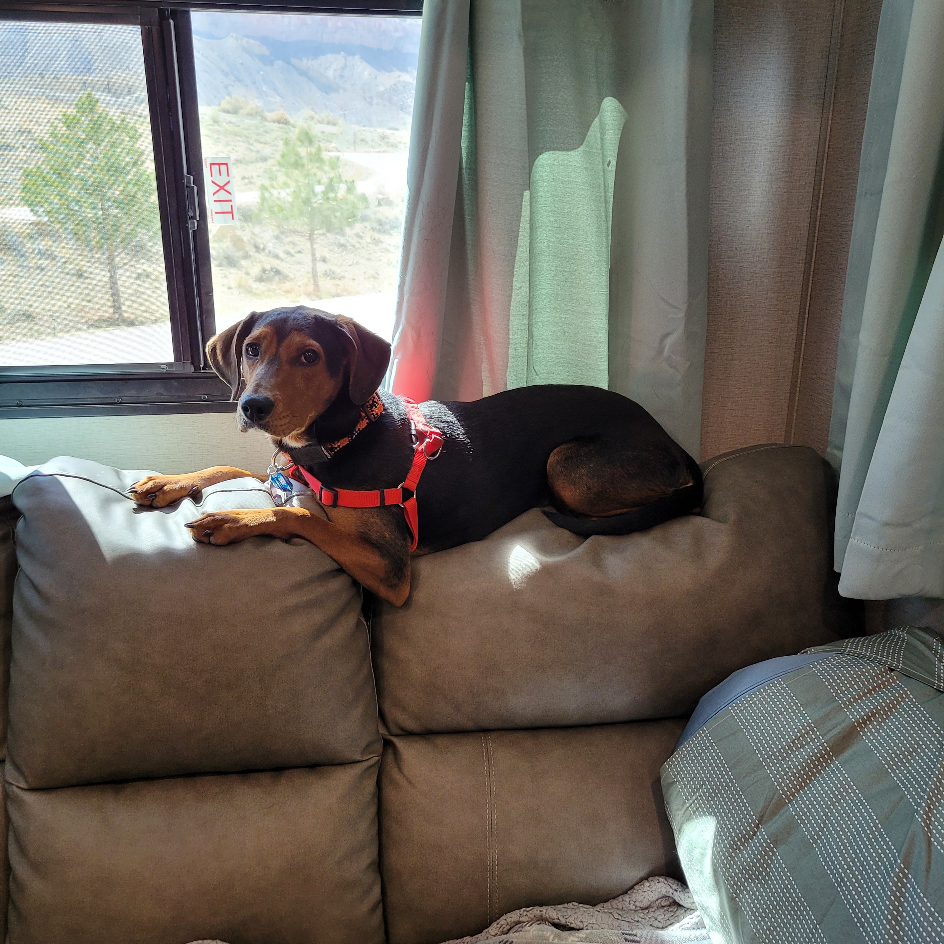 I started traveling again on 4/14. The dogs and I headed back to Utah. Our first stop was Cedar City. We camped at a state park with no hook ups-no electricity, water, or sewer. It was a beautiful, huge stop and we were there for a week