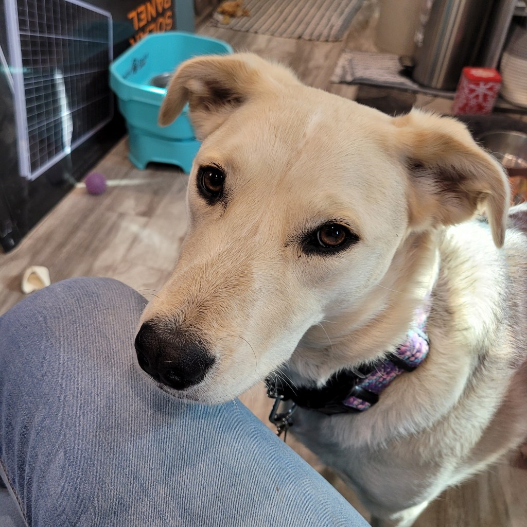 It was a few days before I could go see her and when I did, my heart just went out to her. She was cowering in the back corner of a pen that was used to hold dogs when meeting potential adopters. There was a lot of noise and confusion. It was 12/22 and in a thrift store. Lots of stressed out, over sugared people. I took her outside for a little walk. She was really nervous and kept hiding behind me when anyone approached us. She already trusted me. I couldn’t leave her there. So she came home with me.
