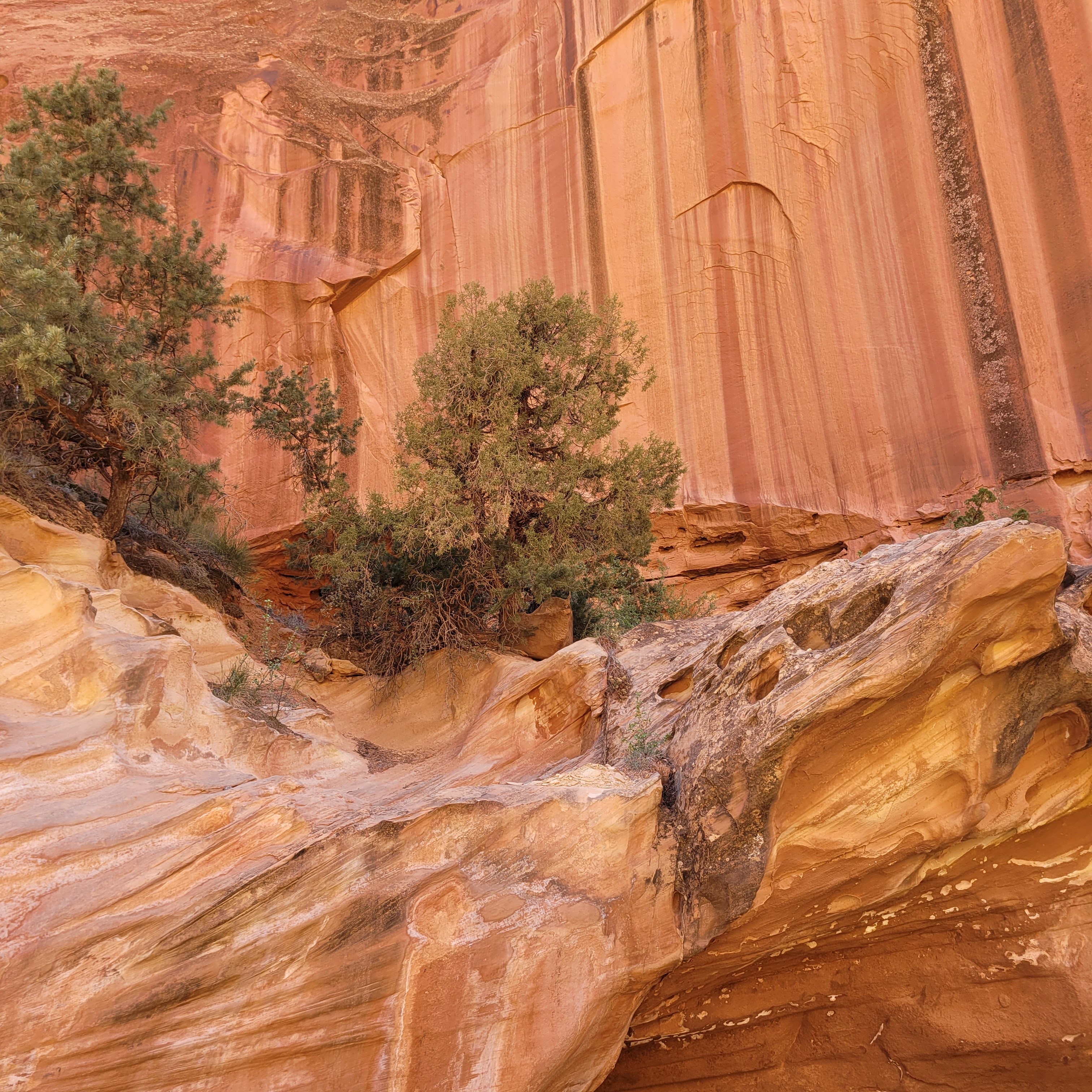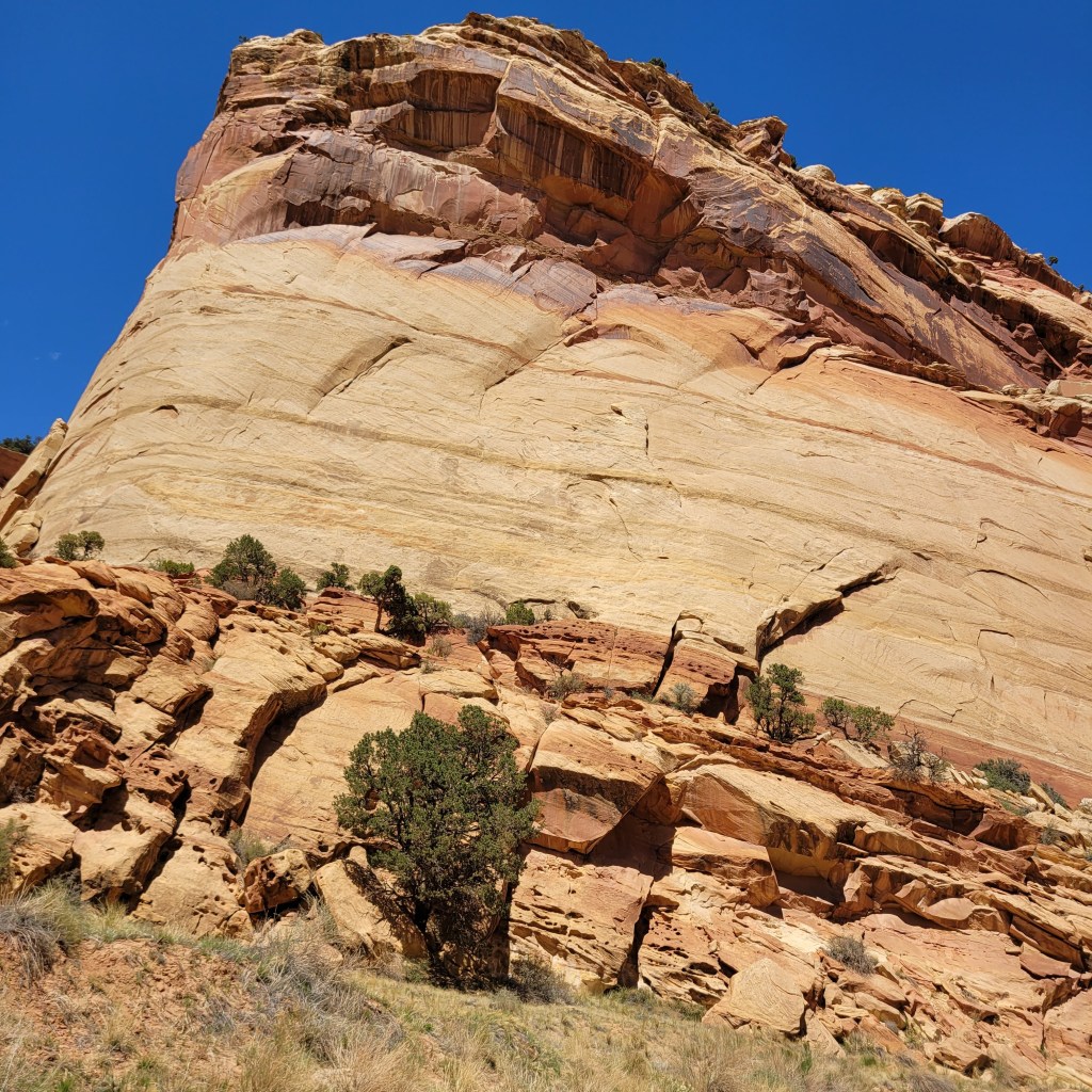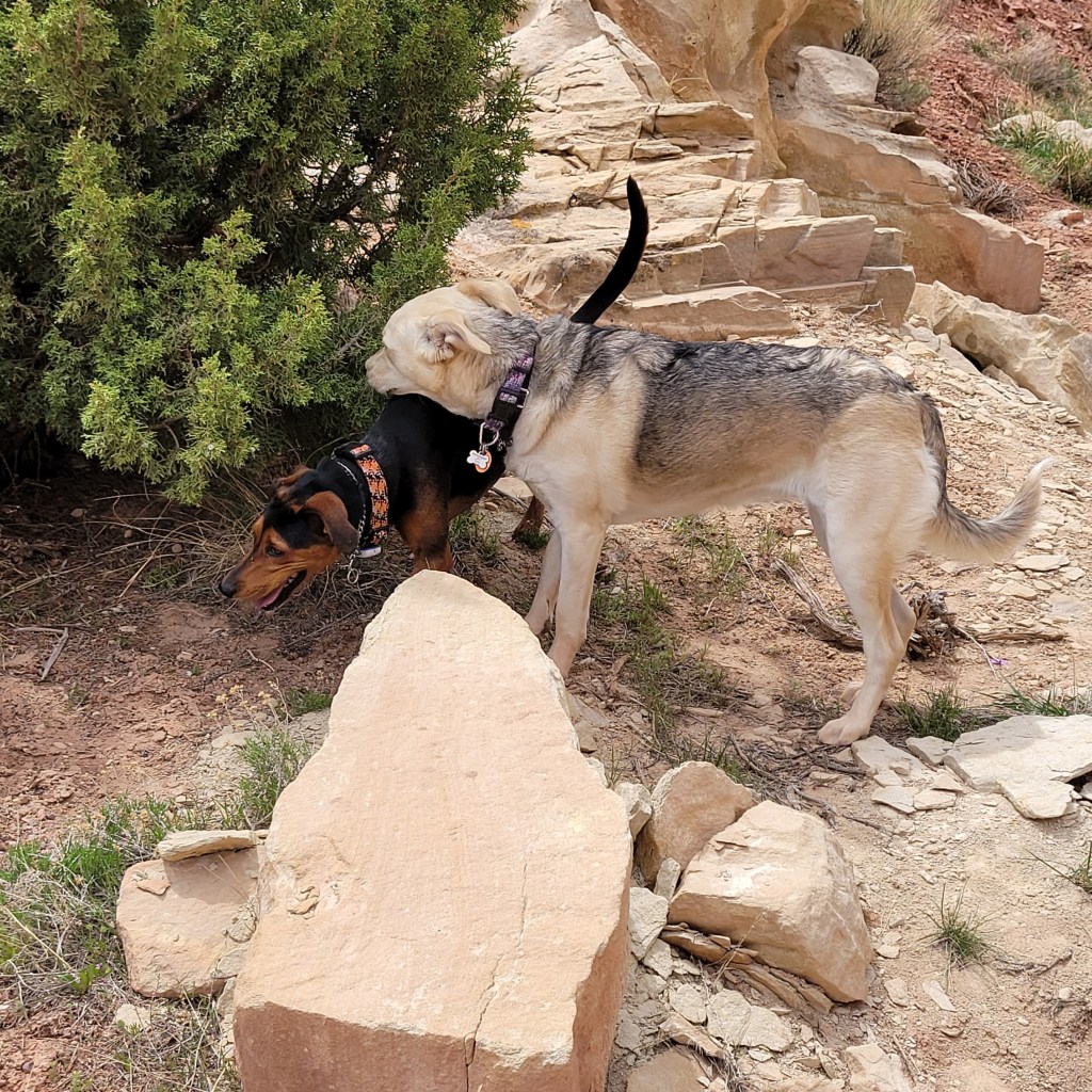 The dogs and I took a trip to Capital Reef National Park last week. What a beautiful place! The colors of the rocks are amazing.. According to legend, Butch Cassidy had a few hiding places there. I can understand that. There are tons of little canyons and high cliffs.