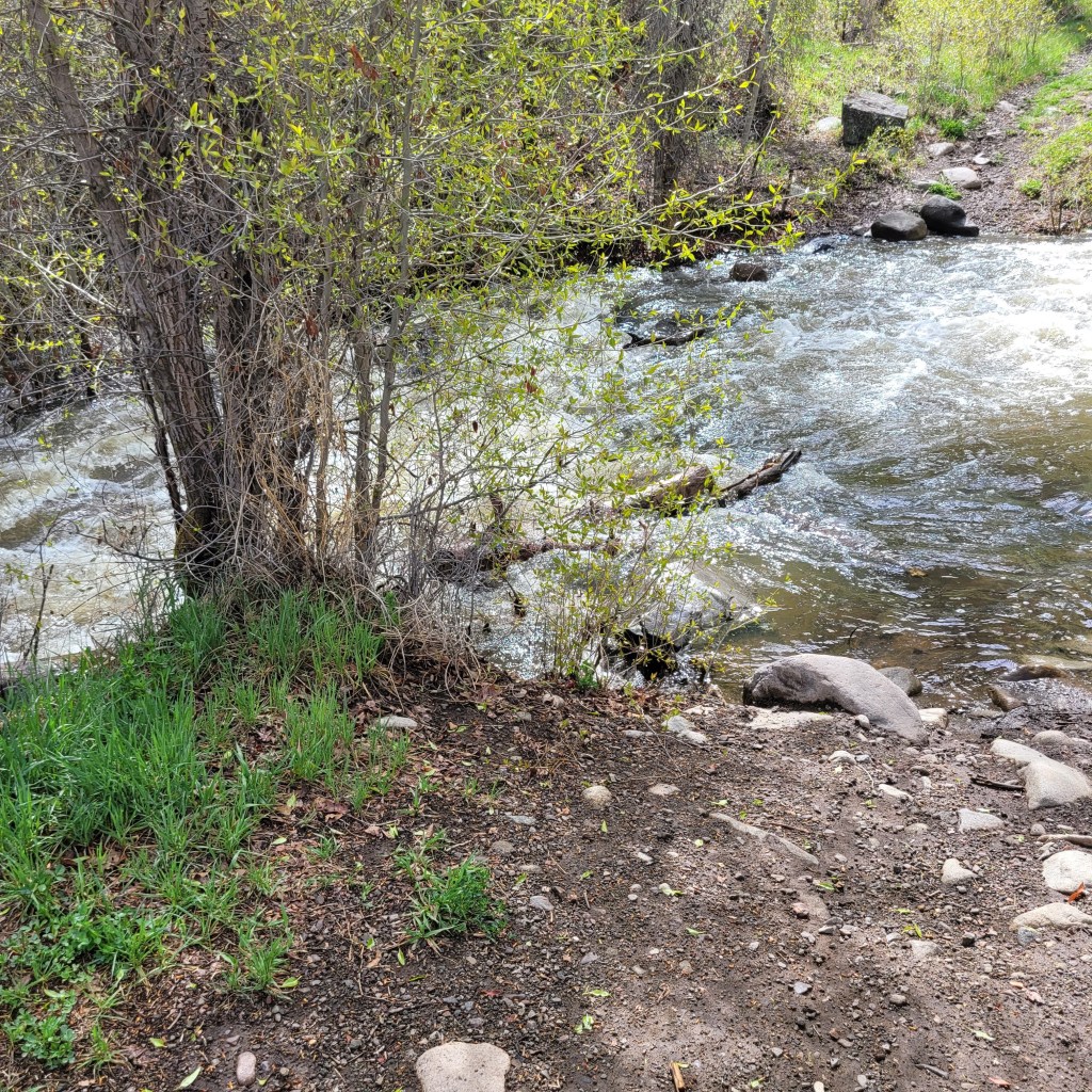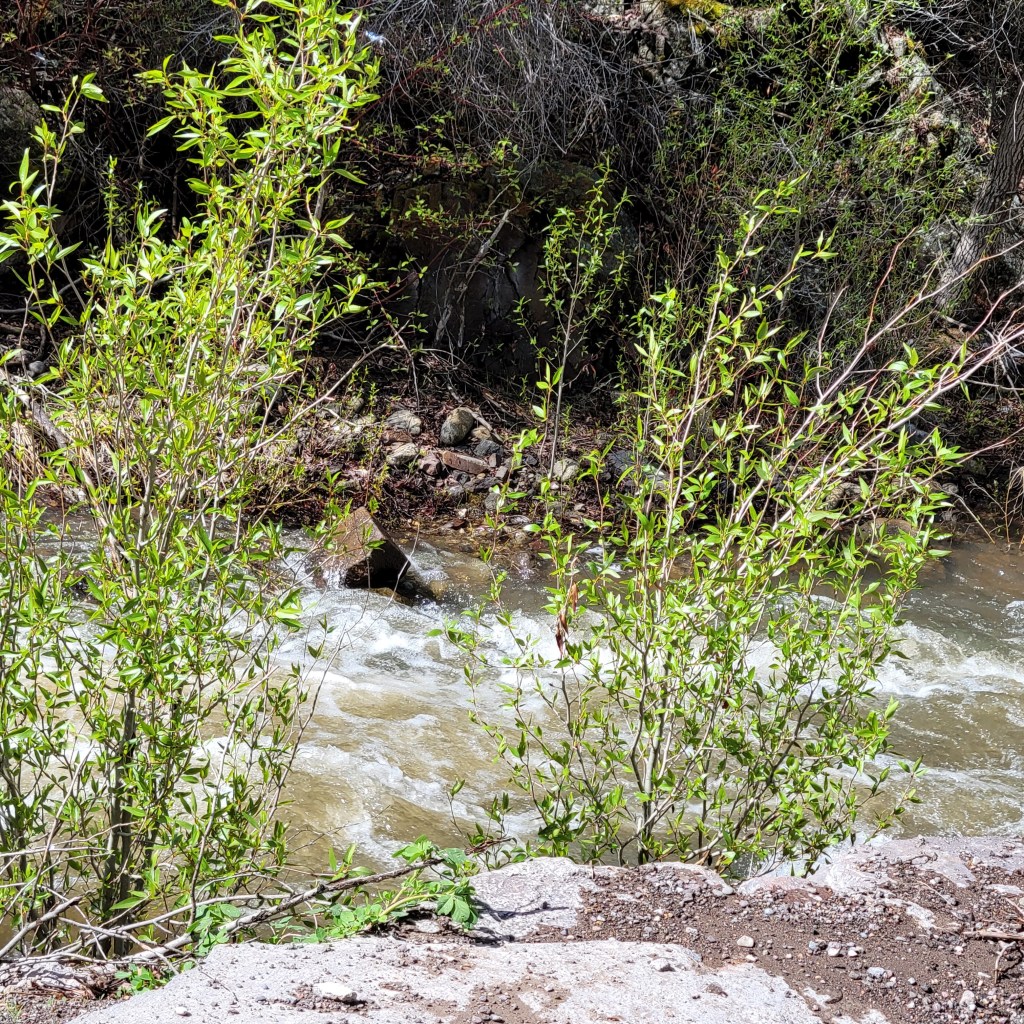 Today, we went up to the canyon just above the RV park. We have had a lot of rain in the past few days. Between that and the snow melt, the stream is full and going over its banks in some places.